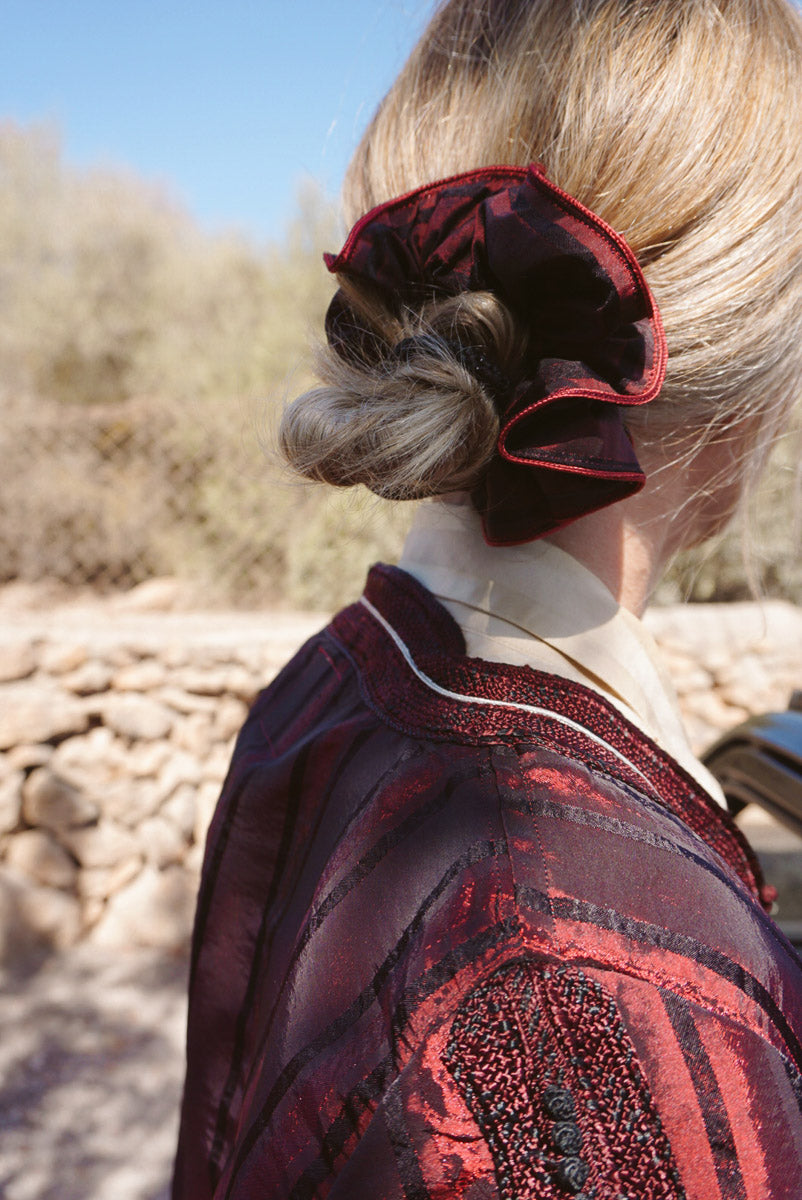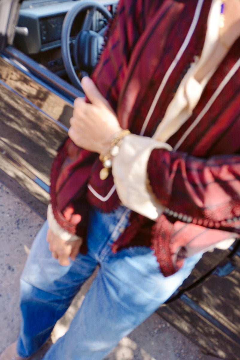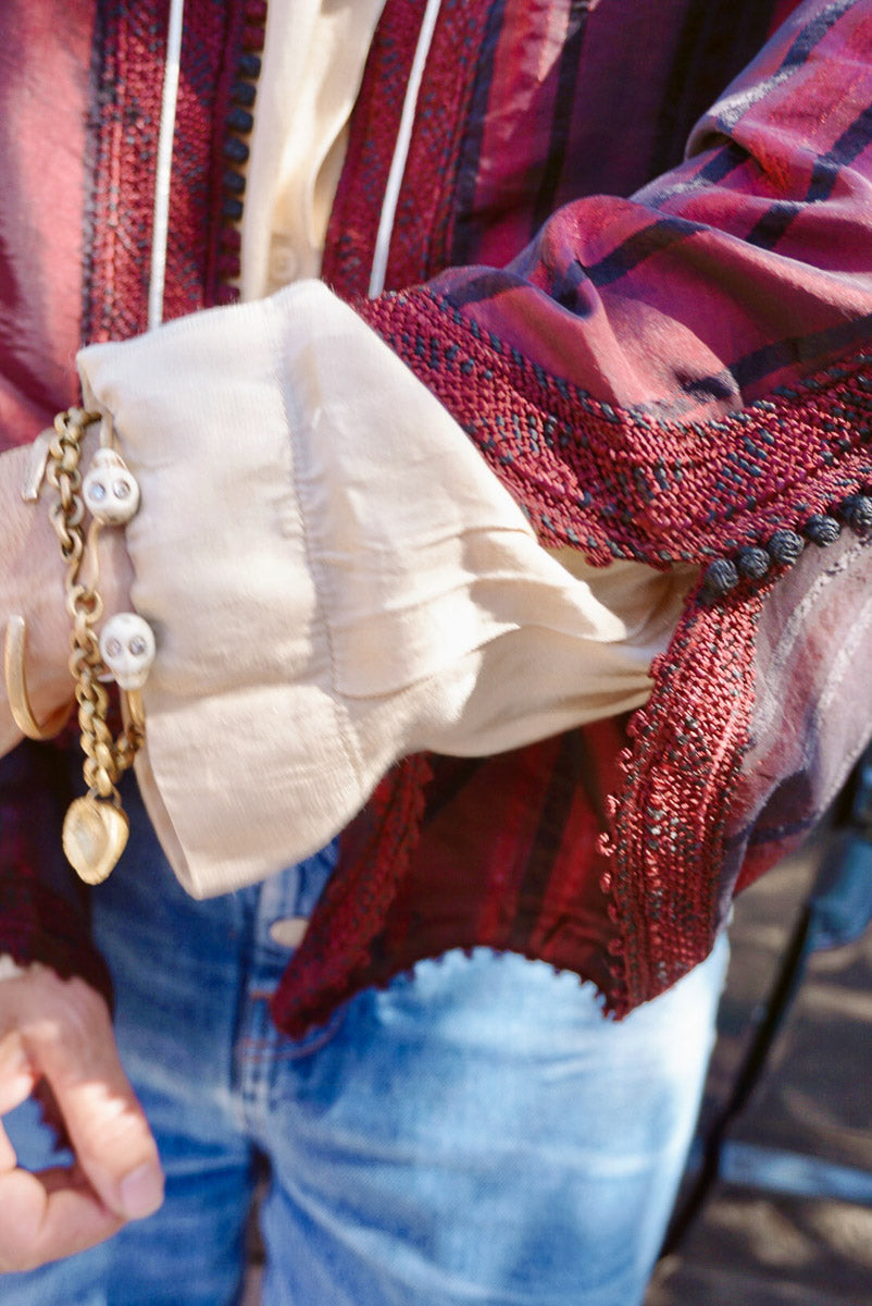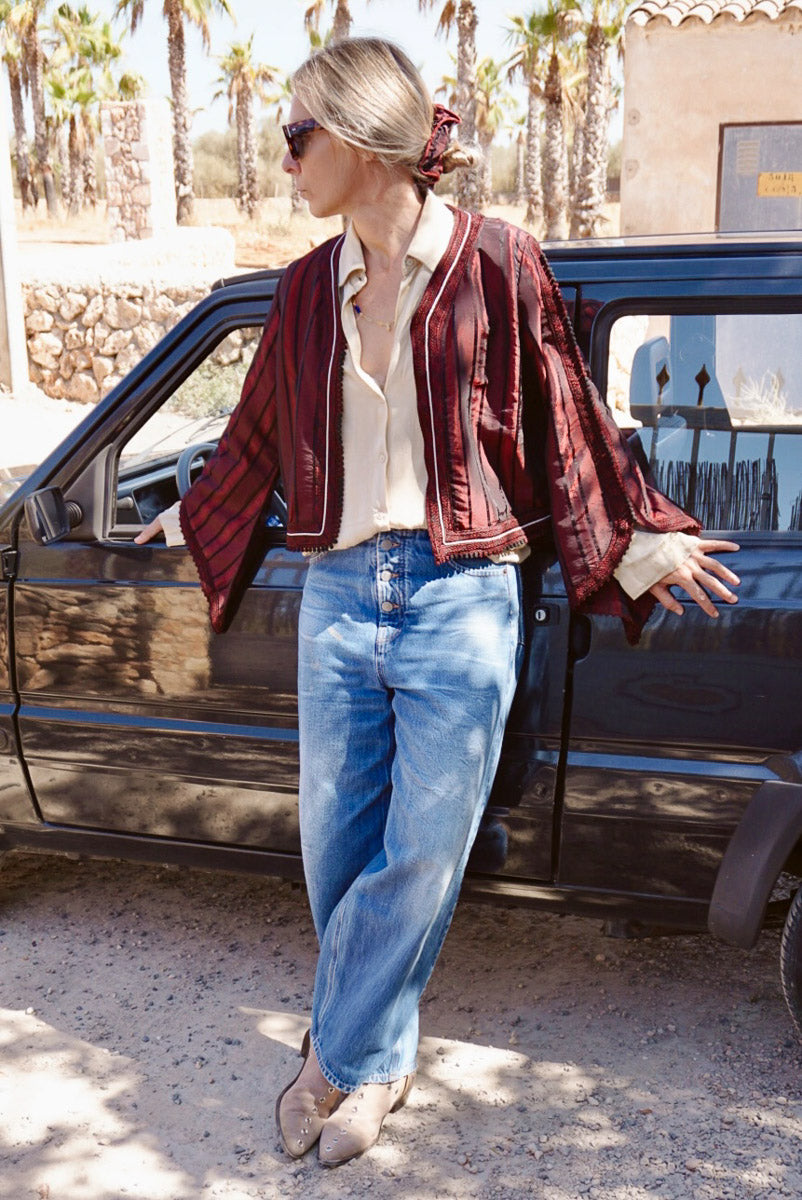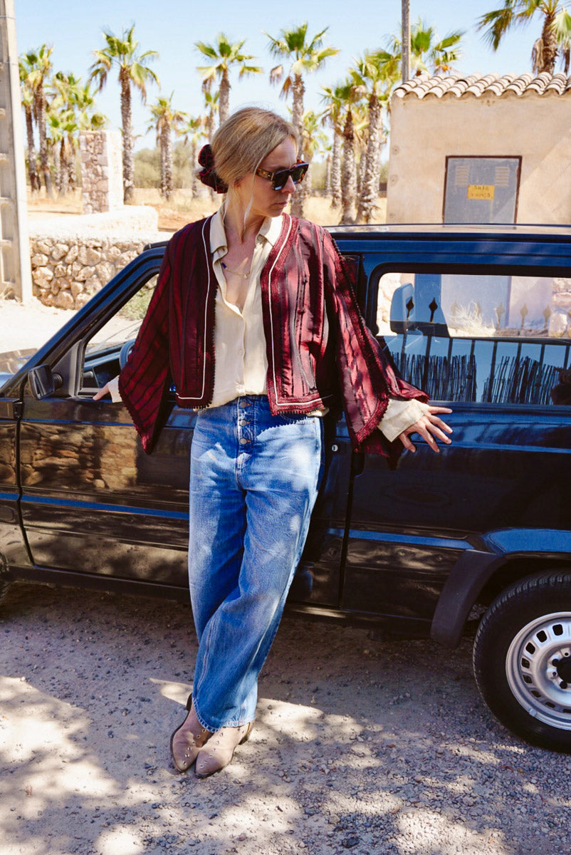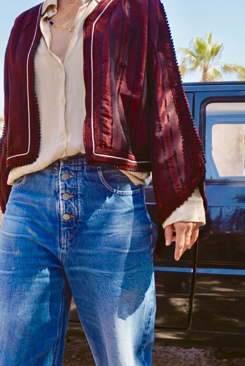 Let’s talk details. The wide, extraordinary sleeves bring all the drama, while the handmade little silk buttons on the waist and sleeves add a touch of unexpected, luxe coolness. It’s cropped just right for pairing with high-waisted jeans or a leather mini (because why not go all in?).
