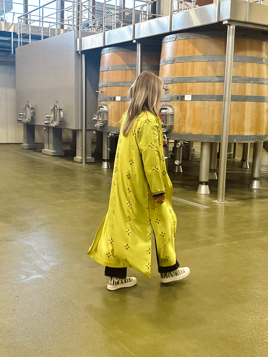 Drenched in the dreamiest light lime green with a playful scatter of yellow and grey flowers, it’s equal parts subtle and standout (you know we love a balance). The ribbons keep it looking put-together when you’re feeling carefree, and oh yes—it has pockets.