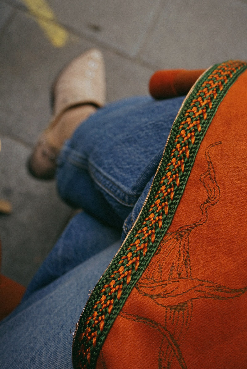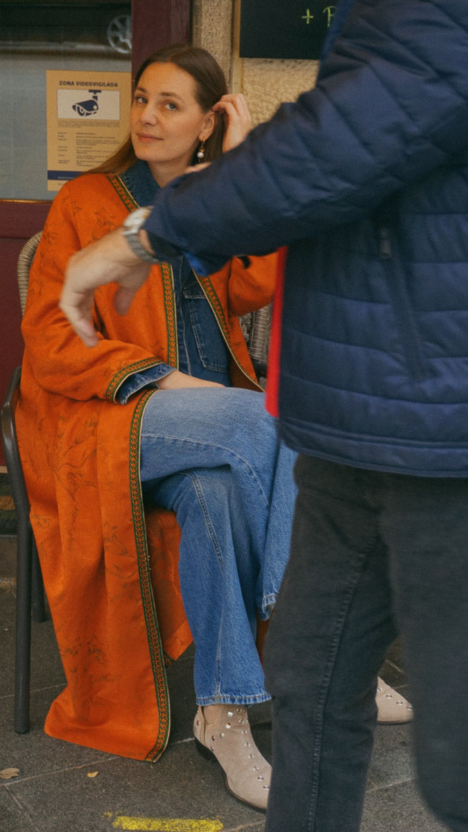 This orange kimono with subtle green accents is the perfect blend of comfort and understated style. Crafted from a woven fabric that’s soft as cashmere, it’s a piece you’ll reach for again and again.