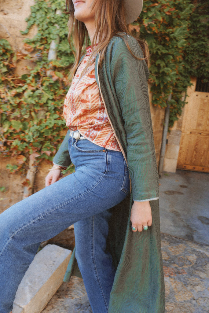 A grounded shade of green that feels calm and strong. Easy to throw on, hard to take off.