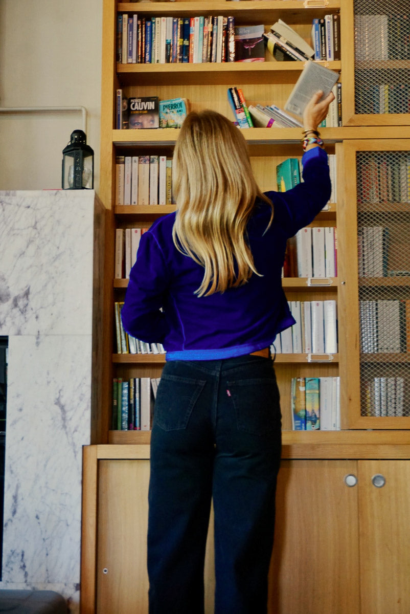 Say hello to your new obsession: a cropped jacket in the dreamiest royal blue silk velvet. It’s the piece you’ll reach for when you want to dial up the luxe—whether it’s daytime errands turned runway or an evening out that calls for subtle glam.