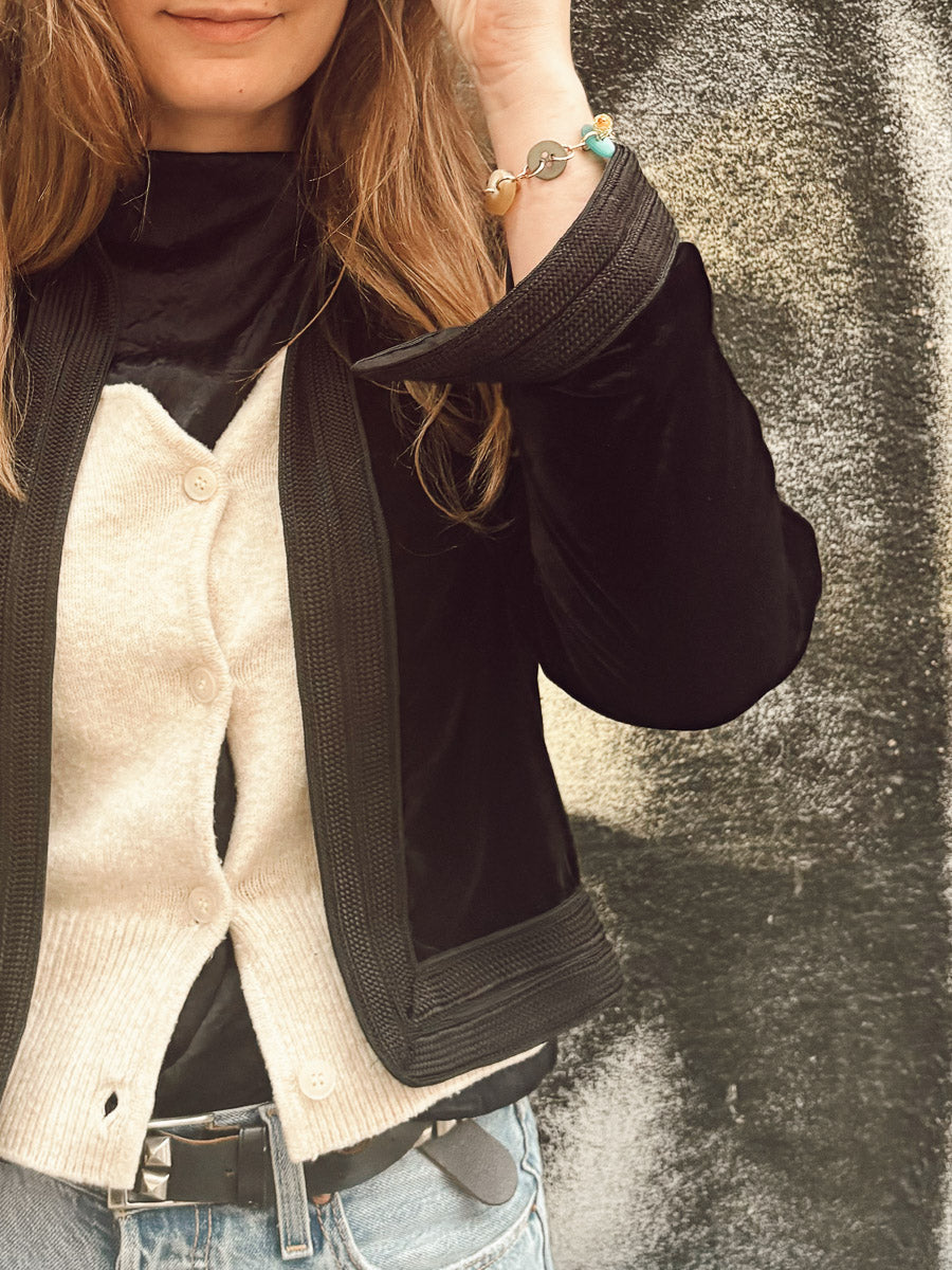 Pair it with high-rise trousers for a chic daytime look, or throw it over your favorite dress to add a layer of soft, sultry glam. The velvet? It’s incredibly plush—so comfortable you’ll forget you’re wearing it (until the compliments roll in). This piece has a loyal fanbase; collectors know the magic and snag every color we release.